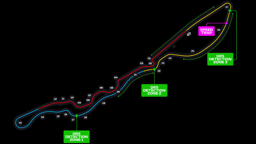- Η πίστα σχεδιάστηκε πριν 3 χρόνια και βελτιώνεται συνεχώς από τότε. Φέτος υπάρχει νέα σηματοδότηση στις εξόδους διαφυγής, ενώ κάποια κερμπ είναι πιο ήπια. Μερικοί τοίχοι άλλαξαν θέση όπως αυτοί στις στροφές 8 και 10 ώστε να βελτιωθεί η ορατότητα στην είσοδο, αλλά και στη στροφή 23 για να μειωθεί η ταχύτητα διέλευσης. Επίσης, άλλαξε το σημείο που βρίσκεται ο αισθητήρας ο οποίος καθορίζει αν θα ανοίξει το τρίτο DRS, στην τελευταία φουρκέτα πριν την κύρια ευθεία, έτσι ώστε να μην το εκμεταλλεύονται οι οδηγοί και φρενάρουν επικίνδυνα σε σημείο που θα έπρεπε να επιταχύνουν.