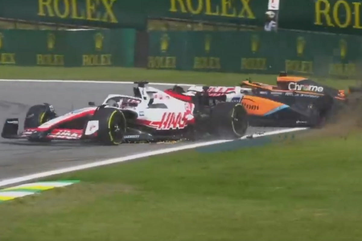 Πρόωρο τέλος για Μάγκνουσεν και Ρικάρντο στο Grand Prix της Βραζιλίας, με τον Αυστραλό να ακουμπάει τον Δανό και την Haas να παίρνει στη συνέχεια παραμάζωμα τη McLaren.