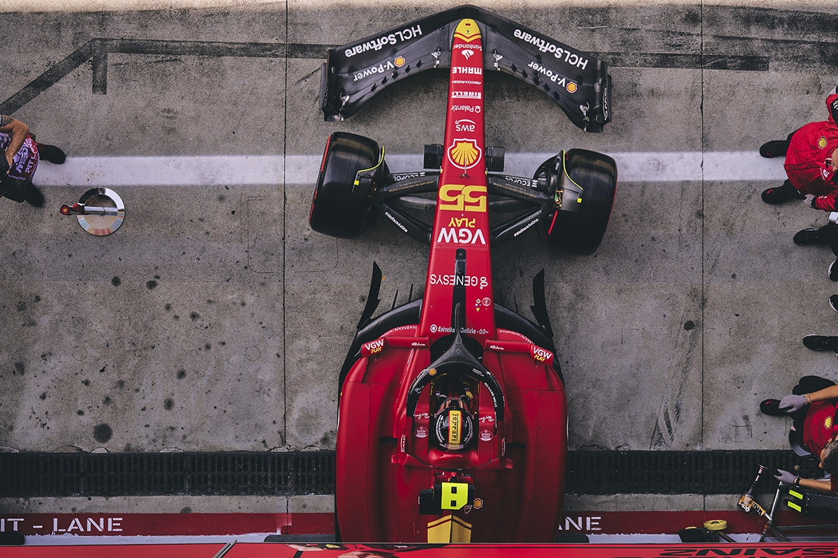 Όμως, τις Κυριακές στις συστοιχίες γύρων του αγώνα τα πράγματα άλλαζαν. Μετά το GP Αυστρίας το 2022, όπου ο Σαρλ Λεκλέρ κέρδισε επιβλητικά, και με αποκορύφωμα φέτος, τα μονοθέσια της Ferrari άρχισαν να εμφανίζουν σαφή και δυσεπίλυτα προβλήματα διαχείρισης κάθε τύπου γόμας, με αποτέλεσμα να μην είναι ανταγωνιστικά απέναντι στις Red Bull – και ενίοτε, φέτος, απέναντι στις Aston Martin και Mercedes, σαφώς καλύτερες στη διαχείριση της γόμας.