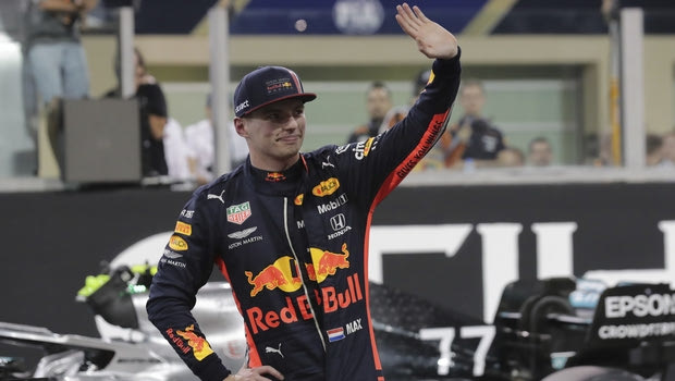 Red Bull driver Max Verstappen of the Netherland's waves after the qualifying session at the Yas Marina racetrack in Abu Dhabi, United Arab Emirates, Saturday, Nov. 30, 2019. The Emirates Formula One Grand Prix will take place on Sunday. (AP Photo/Hassan Ammar)
