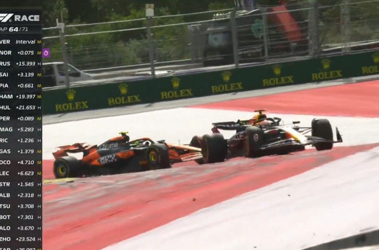 Χαμός έγινε στο φινάλε του GP της Αυστρίας στην Formula 1. Ο Μαξ Φερστάπεν προπορευόταν, με τον Λάντο Νόρις να είναι στο κατώπι του. Εν τέλει, η μονομαχία των δύο κατέληξε σε σύγκρουση.