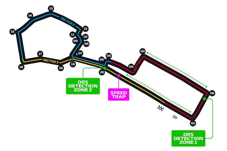 - Η πίστα συνδυάζει ανοιχτές καμπές και πολύ κλειστές στροφές, στις οποίες το παραμικρό λάθος μπορεί να αποβεί μοιραίο. Οι ομάδες πρέπει να αποφασίσουν αν θα επιλέξουν στα μονοθέσιά τους ρυθμίσεις για υψηλή τελική ταχύτητα στις ευθείες, για καλύτερο κράτημα στο κλειστό κομμάτι της διαδρομής, ή κάτι ενδιάμεσο.