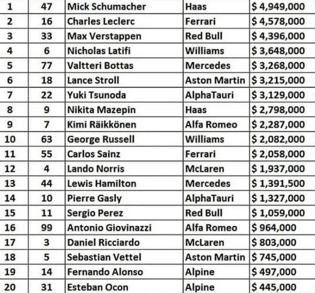 Από τον Μικ Σουμάχερ της Haas Ferrari, μέχρι τον Τσαρλς Λεκλέρκ της Ferrari και τους Φερνάντο Αλόνσο – Έστεμπαν Οκόν της Alpine, η λίστα περιλαμβάνει επιδιορθώσεις αξίας 45.576.500 δολαρίων απ’ όσα έγιναν στα Grand Prix της χρονιάς.