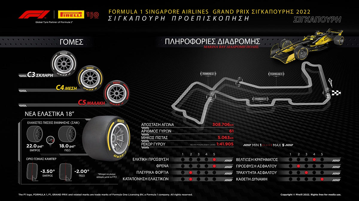 Τα δεδομένα ελαστικών της Pirelli για το GP Σιγκαπούρης 2022 Pirelli