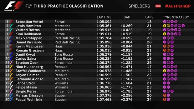 Ο Sebastian Vettel σημείωσε την καλύτερη επίδοση στην τρίτη και τελευταία περίοδο ελεύθερων δοκιμών του Grand Prix Αυστρίας που διεξάγεται στο Red Bull Ring