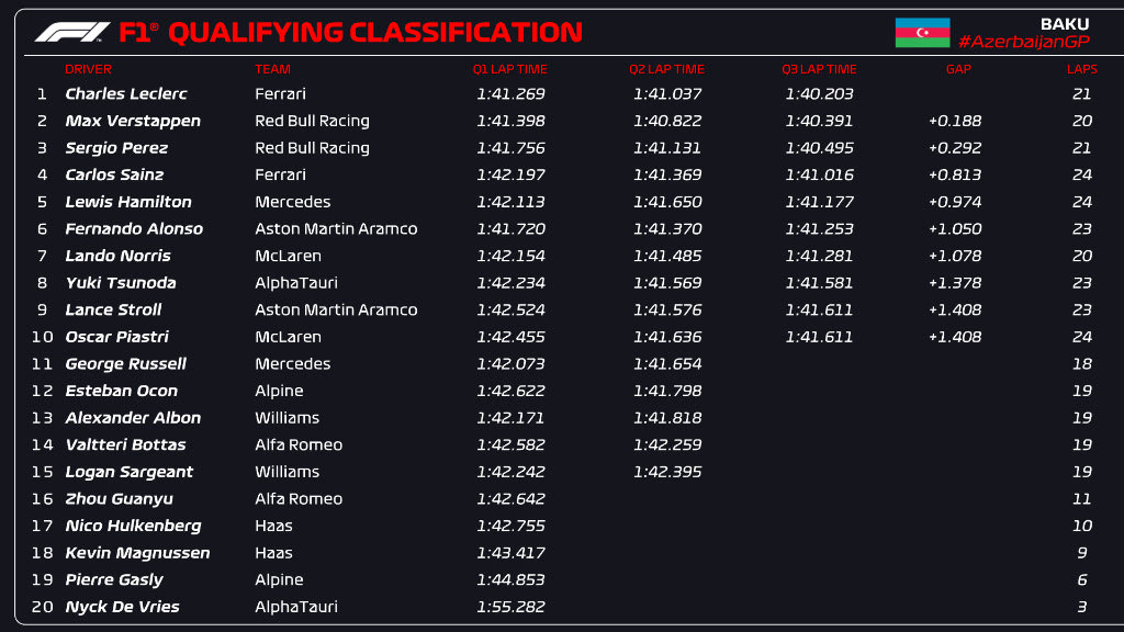 Τα αποτελέσματα στις κατατακτήριες στο GP του Αζερμπαϊτζάν: