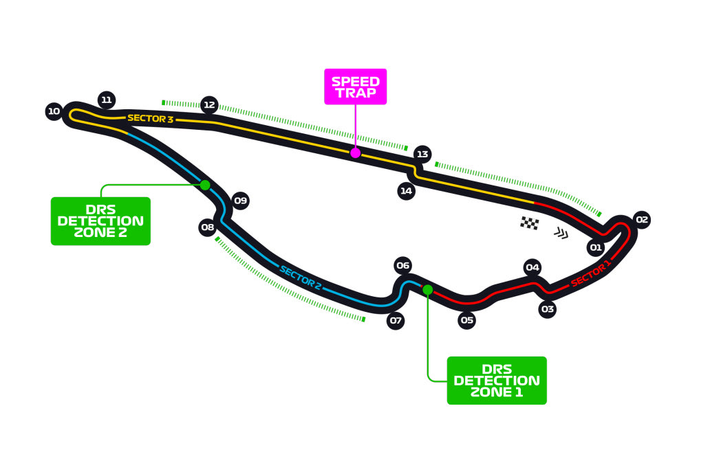 - Πρόκειται για μια γρήγορη πίστα που αρέσει στους οδηγούς. Έχει δύο ζώνες DRS και είναι εξαιρετικά απαιτητική για τα φρένα, με μεγάλες ευθείες, αρκετά σφικτά σικέιν και την θρυλική φουρκέτα.