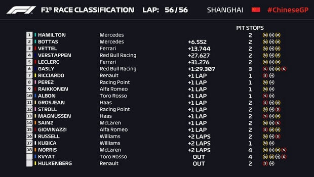 Δύο στα τρία φέτος για τον Λιούις Χάμιλτον με την επιβλητική του νίκη στη Σαγκάη. "Διαταγή" της Ferrari στον Λεκλέρκ να αφήσει την 3η θέση στον Φέτελ.