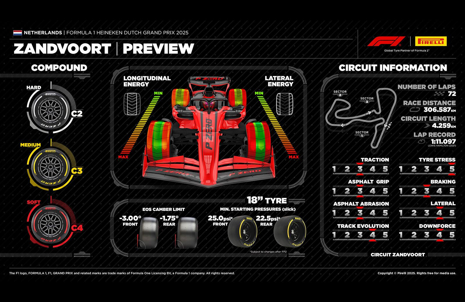 Επίσης, η McLaren κέρδισε πέρσι τον ολλανδικό αγώνα με τον Λάντο Νόρις, και βάσει της παροιμιώδους σταθερότητας της απόδοσης της MCL39 σε κορυφαίο επίπεδο όλη τη χρονιά, και πάλι οι δυο οδηγοί της -Όσκαρ Πιάστρι και Λάντο Νόρις- ξεκινούν ως τα μεγάλα φαβορί για τη νίκη.