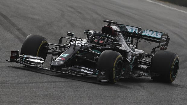Ο Λιούις Χάμιλτον οδηγεί τη Mercedes του στην πίστα του Πορτιμάο Jose Sena Goulao, Pool via AP