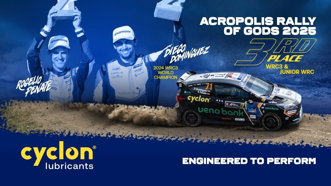Η παρουσία της Cyclon στο Ράλλυ Ακρόπολις 2025 δεν ήταν απλώς υποστηρικτική· ήταν εμψυχωτική, στρατηγική, ουσιαστική. Σε έναν αγώνα που απαιτεί πολλά περισσότερα από απλή ταχύτητα, η Cyclon απέδειξε ότι ξέρει να στηρίζει νικητές, να αντέχει στις δύσκολες συνθήκες και να συνδυάζει επιδόσεις και τεχνογνωσία με τρόπο απόλυτο. Η πορεία των Diego Dominguez και Rogelio Penate σε ελληνικό έδαφος είναι παράδειγμα συνέπειας και αφοσίωσης – και αντανακλά πλήρως τις αξίες της Cyclon: αντοχή, καινοτομία και κορυφαία απόδοση.