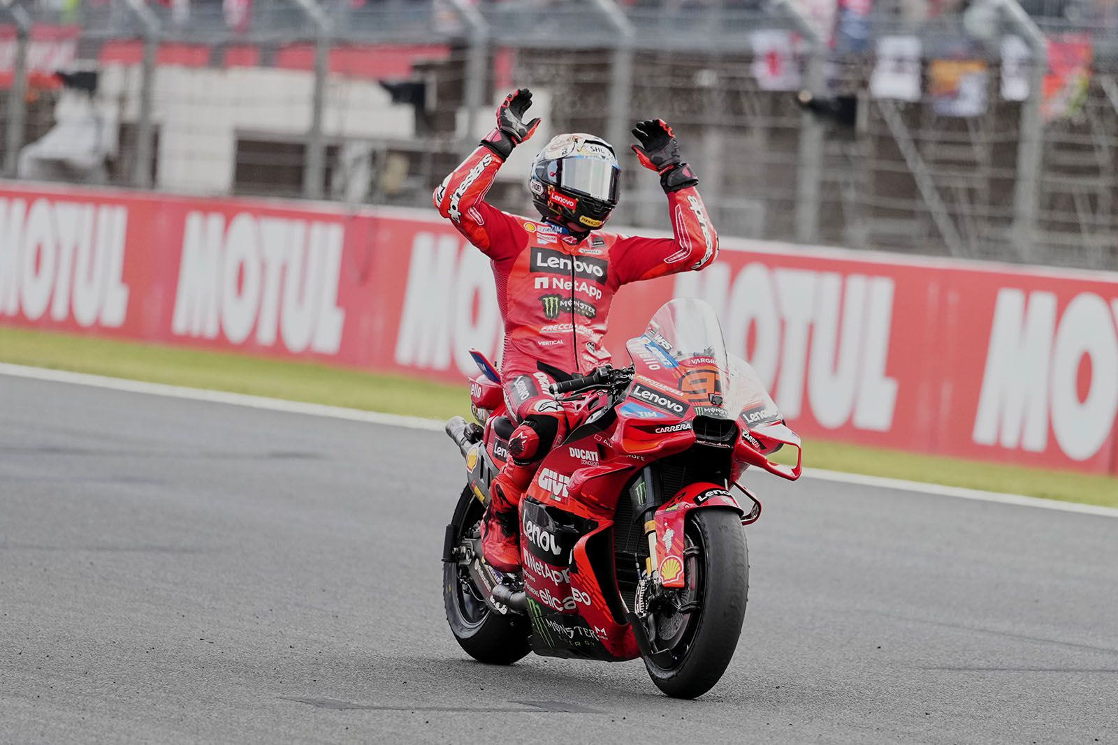 Ο Μαρκ Μάρκεζ εξασφάλισε και μαθηματικά τον έβδομο παγκόσμιο τίτλο του στο MotoGP με τη 2η θέση στον αγώνα της Ιαπωνίας, πίσω από τον (αναγεννημένο) ομόλογό του στη Ducati Πέκο Μπανάια, ολοκληρώνοντας θριαμβευτικά τη συγκλονιστική ιστορία της ανάκαμψής του από τους πολλαπλούς τραυματισμούς της περιδόυ 2020-’23.
