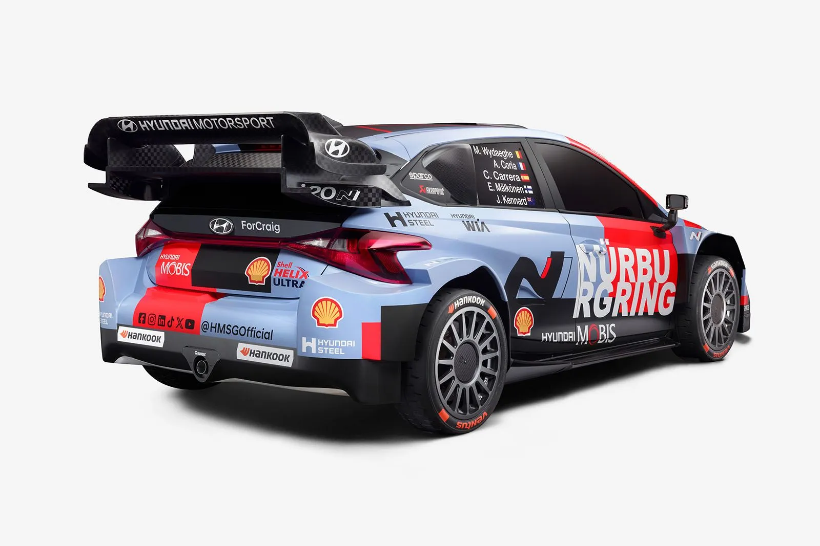 Ο νέος χρωματισμός του i20 N Rally1 για το 2026 σηματοδοτεί μια αλλαγή φιλοσοφίας, αποτίοντας φόρο τιμής στην αγωνιστική κληρονομιά της Hyundai παγκοσμίως. Τα χαρακτηριστικά χρώματα Performance Blue και Active Red επιστρέφουν, πλαισιωμένα από σχεδιαστικά στοιχεία που παραπέμπουν στο Νίρμπουργκρινγκ, την «πατρίδα» της Hyundai N, αλλά και στο Namyang, όπου βρίσκονται το κέντρο έρευνας και εξέλιξης και το σχεδιαστικό κέντρο του Ομίλου Hyundai. Παράλληλα, σε επιλεγμένους αγώνες του πρωταθλήματος θα χρησιμοποιηθούν και ειδικές, μοναδικές εμφανίσεις.