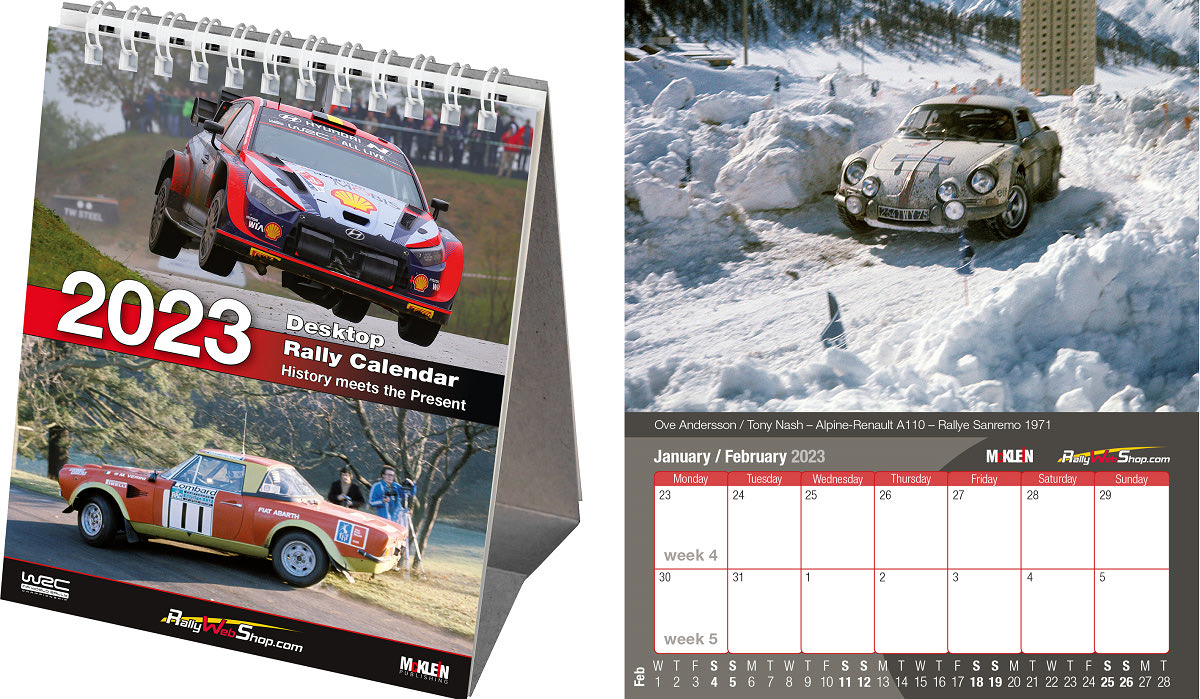 Με σχεδόν ένα μέτρο πλάτος και με εξαιρετικές φωτογραφίες, το επίσημο ημερολόγιο τοίχου του Παγκόσμιου Πρωταθλήματος Ράλι της FIA παραμένει το μεγαλύτερο του είδους του. Το τεράστιο πανοραμικό ημερολόγιο «McKlein Rally 2023 – The Wider View» αναδεικνύει μοναδικά τη γοητεία των ράλι, μέσα από ασυνήθιστες προοπτικές και ιδιαίτερες φωτογραφικές τεχνικές.