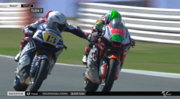 Τελειωμό δεν έχουν οι μπελάδες του Ρομάνο Φενάτι. Ο Ιταλός αναβάτης κατά τη διάρκεια αγώνα του Moto2 στην πίστα του Μισάνο έπιασε την μανέτα του φρένου του Στέφανο Μάντζι όταν οι δυο τους οδηγούσαν με 250 χιλιόμετρα την ώρα.