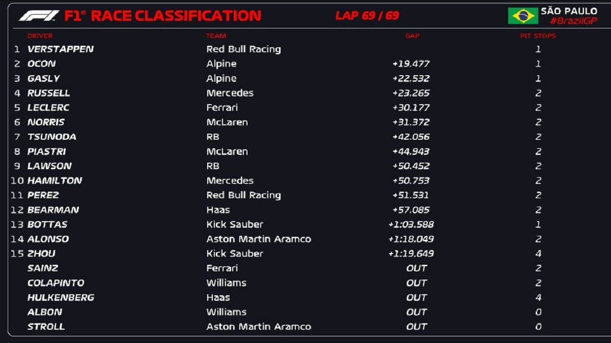 GP Βραζιλίας 2024, Αποτελέσματα FORMULA 1