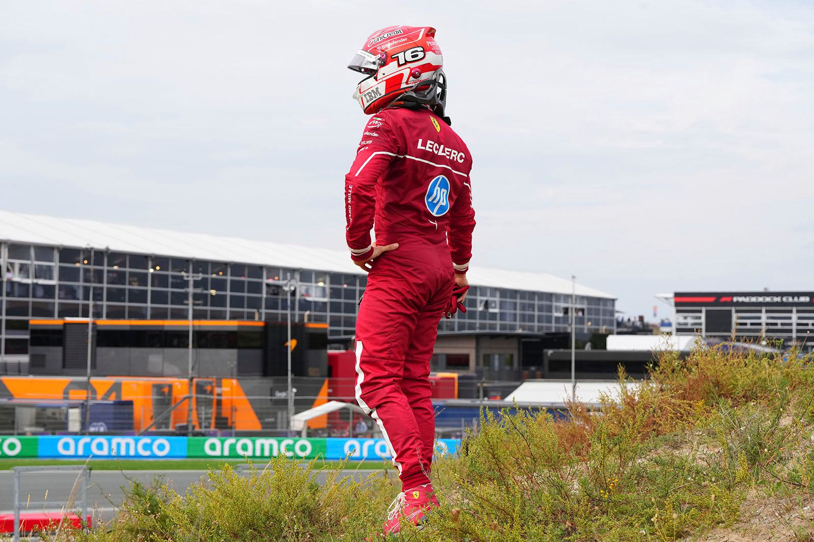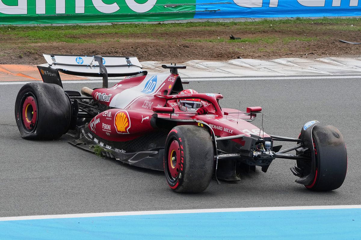 Ο Σαρλ Λεκλέρ εγκατέλειψε από την 5η θέση του GP Ολλανδίας στον 53ο γύρο όταν παρασύρθηκε από τον Αντρέα Κίμι Αντονέλι της Mercedes, που προσπάθησε να περάσει το Μονεγάσκο από την εσωτερική της στροφής 3 αλλά κατέληξε υποστρέφοντας να χτυπήσει τον πίσω αριστερό τροχό της Ferrari.