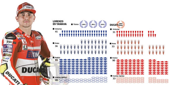 Στο γράφημα της MARCA μπορείτε να δείτε τις επιτυχίες του Lorenzo καθώς επίσης και αυτές της Ducati, στη μεγάλη κατηγορία.