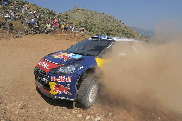 LOUTRAKI, GREECE - JUNE 18: Sebastien Ogier of France and Julien Ingrassia of France compete in their Citroen Total WRT Citroen DS3 WRC during Day 2 of the WRC Rally of Greece on June 18, 2011 in Loutraki, Greece. (Photo by Massimo Bettiol/Getty Images)