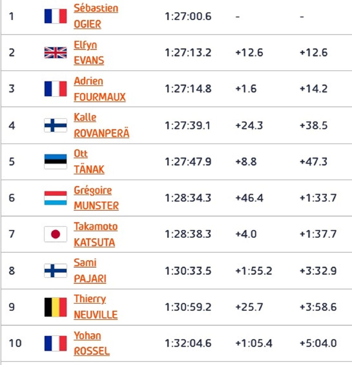 Στο μεταξύ, ο Οζιέ είχε πλησιάσει τον Έβανς στο 1,5’’, αλλά μετά το Σέρβις ο Ουαλός απάντησε με έναν εξαίρετο χρόνο στην ΕΔ7 για να το αυξήσει στα 7,9’’. Δεν έμελλε, όμως, ο Έβανς να κρατήσει το προβάδισμα, καθώς σε ένα παγωμένο σημείο της προτελευταίας ΕΔ γλίστρησε και με μισό τετ-α-κε έχασε αρκετά δευτερόλεπτα για να δώσει την πρώτη θέση στον Οζιέ.