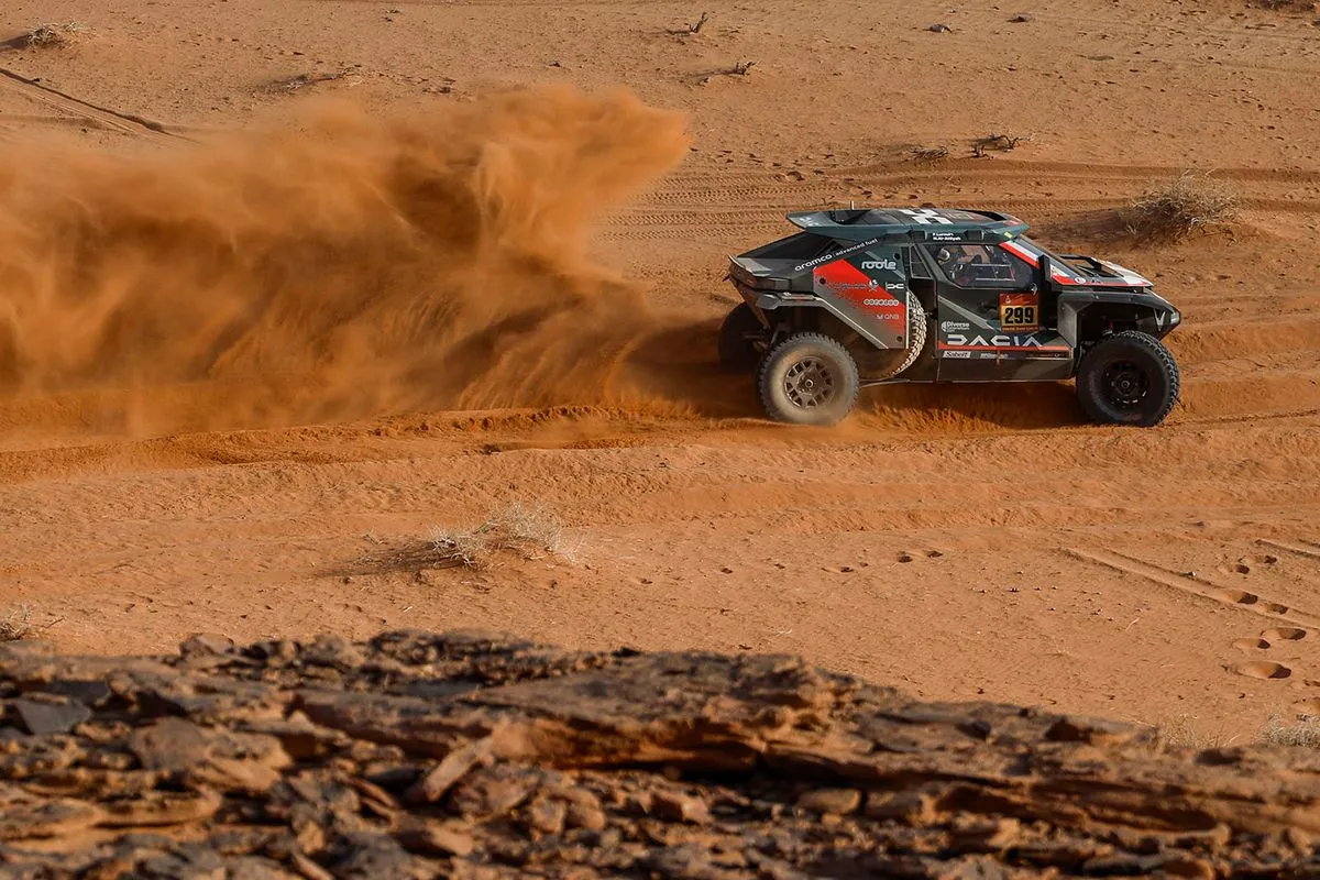 Πίσω του ο Σεμπάστιαν Λεμπ ολοκλήρωσε το εντυπωσιακό 1-2 της Dacia στα 326 αγωνιστικά χιλιόμετρα από τη Χαΐλ στο Ριάντ, όπου τώρα του αγωνιζόμενους περιμένει η ημέρα ξεκούρασης του Σαββάτου πριν αρχίσει την Κυριακή το δεύτερο μισό του αγώνα.