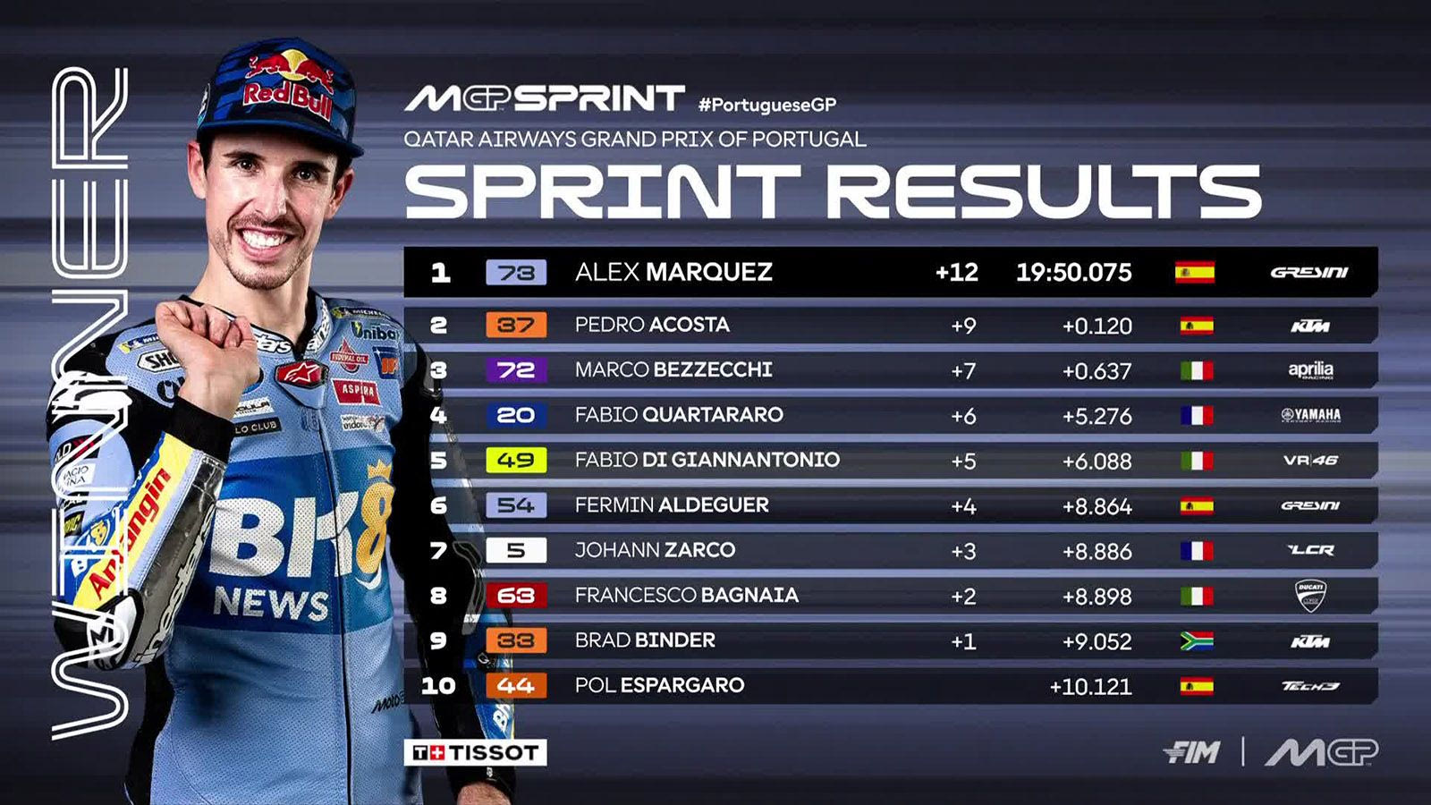 O Άλεξ Μάρκεζ νικητής της μάχης με τον Ακόστα στο Sprint του MotoGP Πορτογαλίας