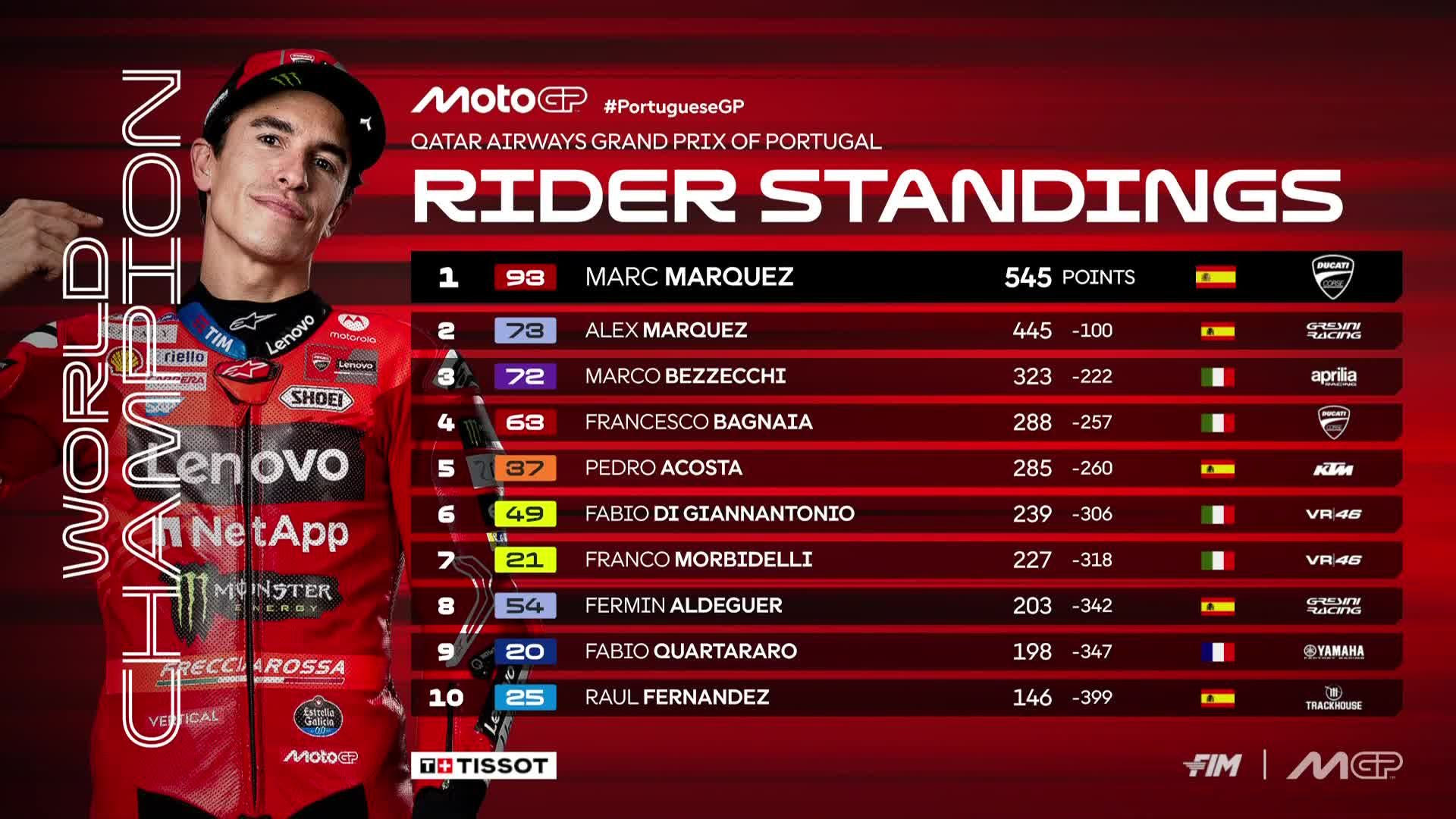 Βαθμολογία MOTOGP 2025 (μετά το GP Πορτογαλίας)