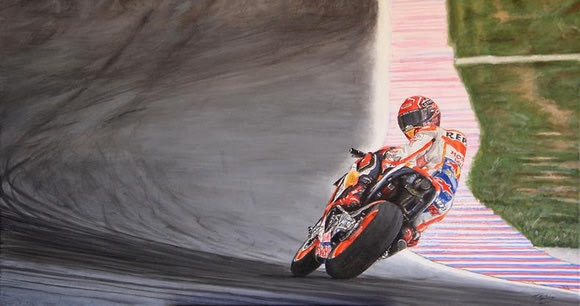 O Ισπανός ζωγράφος, Tomas Canton, αποτύπωσε στον καμβά του την πορεία του Marc Marquez προς την κατάκτηση του Πρωταθλήματος του 2016...