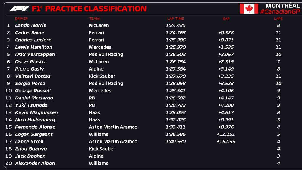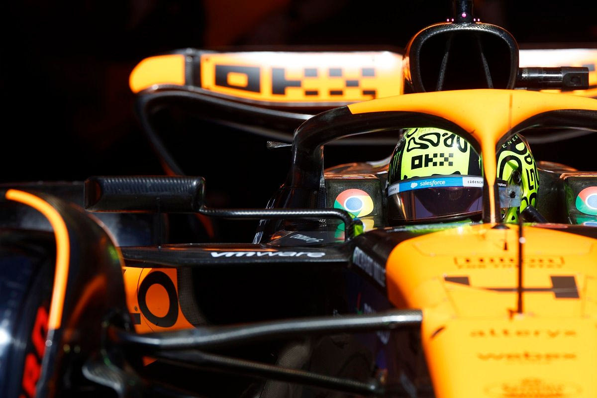 Σε μια πρώτη περίοδο ελεύθερων δοκιμών που ξεκίνησε με βροχή και πλημμυρισμένη πίστα και τελείωσε με λιακάδα και στεγνή άσφαλτο, o Λάντο Νόρις σημείωσε στην εκπνοή με τη μαλακή σλικ γόμα τον ταχύτερο χρόνο με 0,3'' διαφορά από τον Κάρλος Σάινθ της Ferrari.