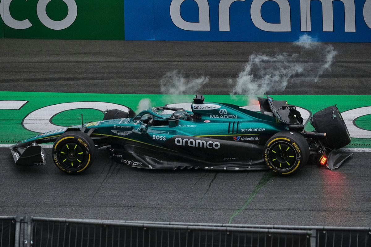Η πρόσκρουση, που διέλυσε όλη τη δεξιά πλευρά της Aston, έσπασε αμέσως την εμπρός ανάρτηση και ίσως αυτό να έσωσε τον Στρολ από έναν τραυματισμό στα χέρια (από το απότομο τίναγμα του τιμονιού) αντίστοιχο με εκείνον του Ντάνιελ Ρικιάρντο πριν από δύο χρόνια.
