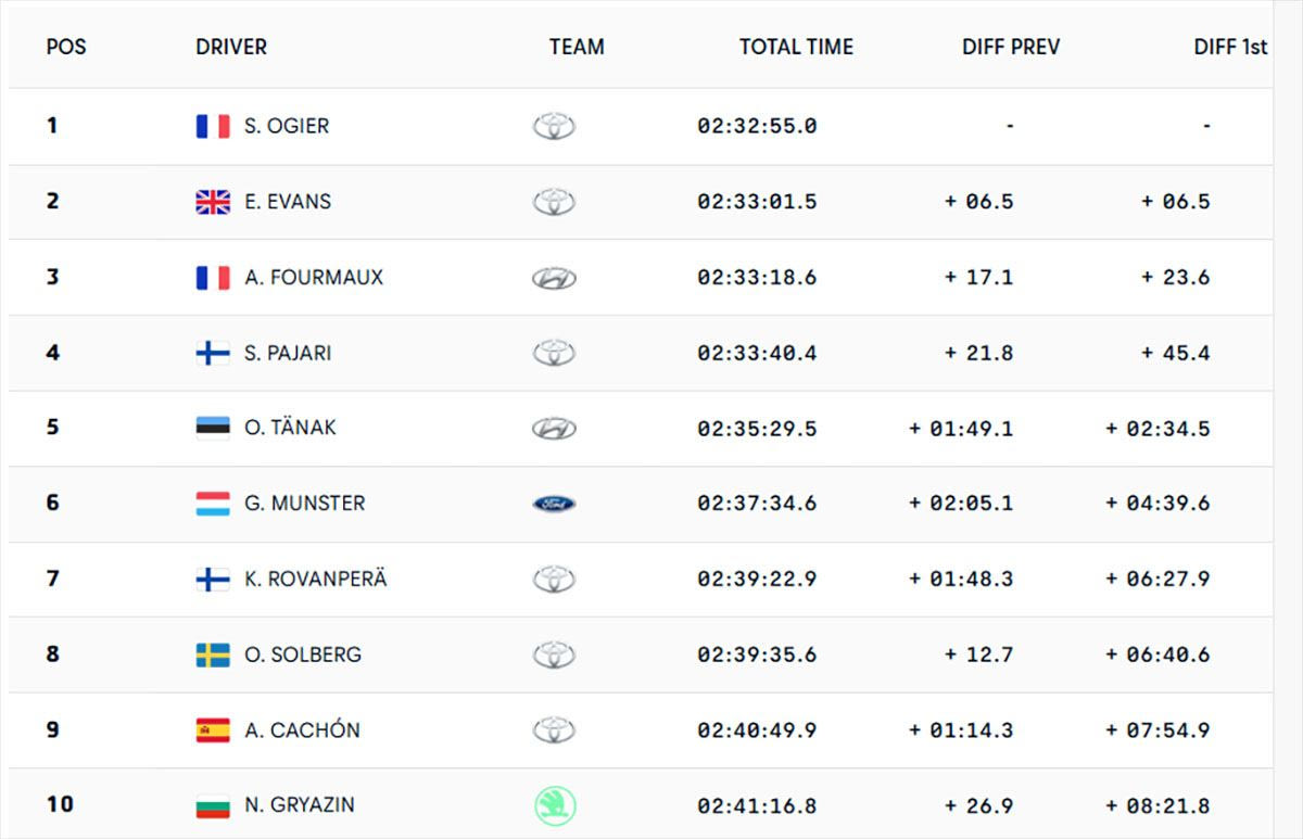 Στην επόμενη ΕΔ, όμως, ο Ogier απάντησε άμεσα, κερδίζοντας με διαφορά 0,3”, ενώ στη συνέχεια, στην ΕΔ13 έκανε έναν εντυπωσιακό χρόνο που του χάρισε ακόμη τρία δευτερόλεπτα. Η μέρα ολοκληρώθηκε με τον Γάλλο να κερδίζει και την Υπερειδική στην “Toyota City”, διατηρώντας τον έλεγχο του αγώνα.
