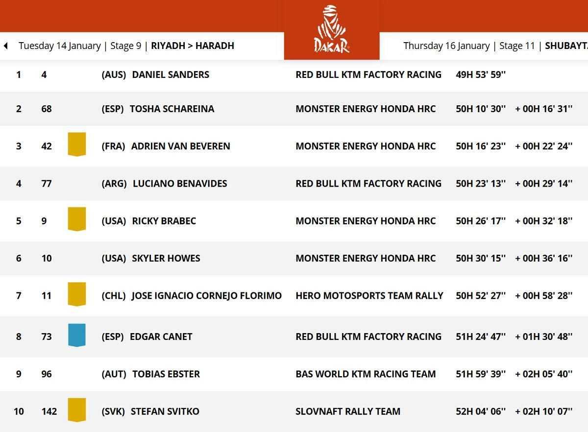 Από τους 10 πρώτους, οι τέσσερις ήταν ιδιωτικών ομάδων, ένας με την κινεζική εταιρεία ΗΟΤΟ στο ντεμπούτο της στο Ντακάρ, και δύο ήταν της κατηγορίας Rally 2. Για τους τρεις πρώτους, το σημερινό τους ήταν το καλύτερο αποτέλεσμα που έχουν σημειώσει στο Ντακάρ. Και ειδικά για τον Ντόχερτι, αυτή η πρώτη νίκη ήρθε παρότι στο ξεκίνημα του φετινού αγώνα έσπασε ένα οστό του ώμου του.