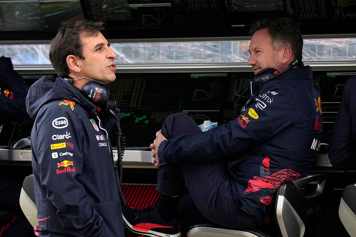 Ο τεχνικός διευθυντής της RBR Πιέρ Βασέ (αριστερά) με τον διευθυντή της ομάδας, Κρίστιαν Χόρνερ AP Photo/Matt Dunham
