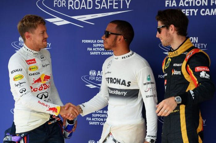 Ο Ρομαίν Γκροζάν (Lotus) “τρύπωσε” στην τρίτη θέση δίπλα στον Νίκο Ρόσμπεργκ (Mercedes). Οι άλλοι δύο διεκδικητές του τίτλου, ο Φερνάντο Αλόνσο (Ferrari) και ο Κίμι Ράικονεν (Lotus) βρίσκονται στην τρίτη σειρά.