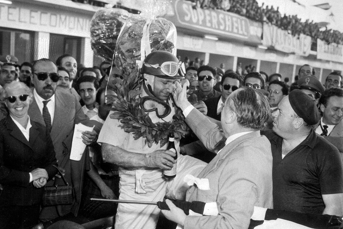 Ο μεγάλος Αργεντίνος, ο πρώτος πολυπρωταθλητής της F1, είχε ήδη κερδίσει 3 πρωταθλήματα -με τις Alfa Romeo, Maserati, Mercedes- πριν πάει στο Μαρανέλο το 1956. Η μεταγραφή του στη Scuderia δεν έγινε αποκλειστικά με τη δική του επιθυμία, αλλά και με τη μεσολάβηση του Αργεντινού προέδρου Χουάν Περόν, που ήταν μέγας υποστηρικτής του.