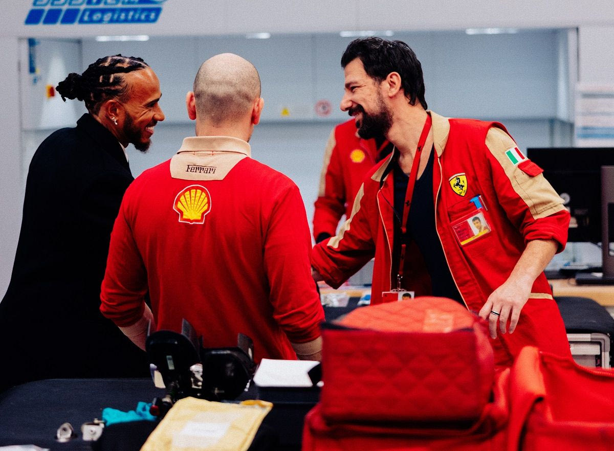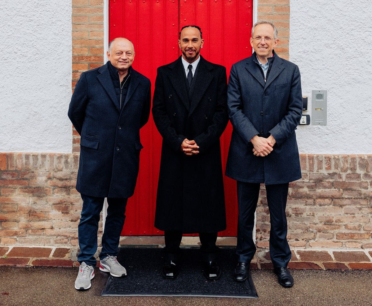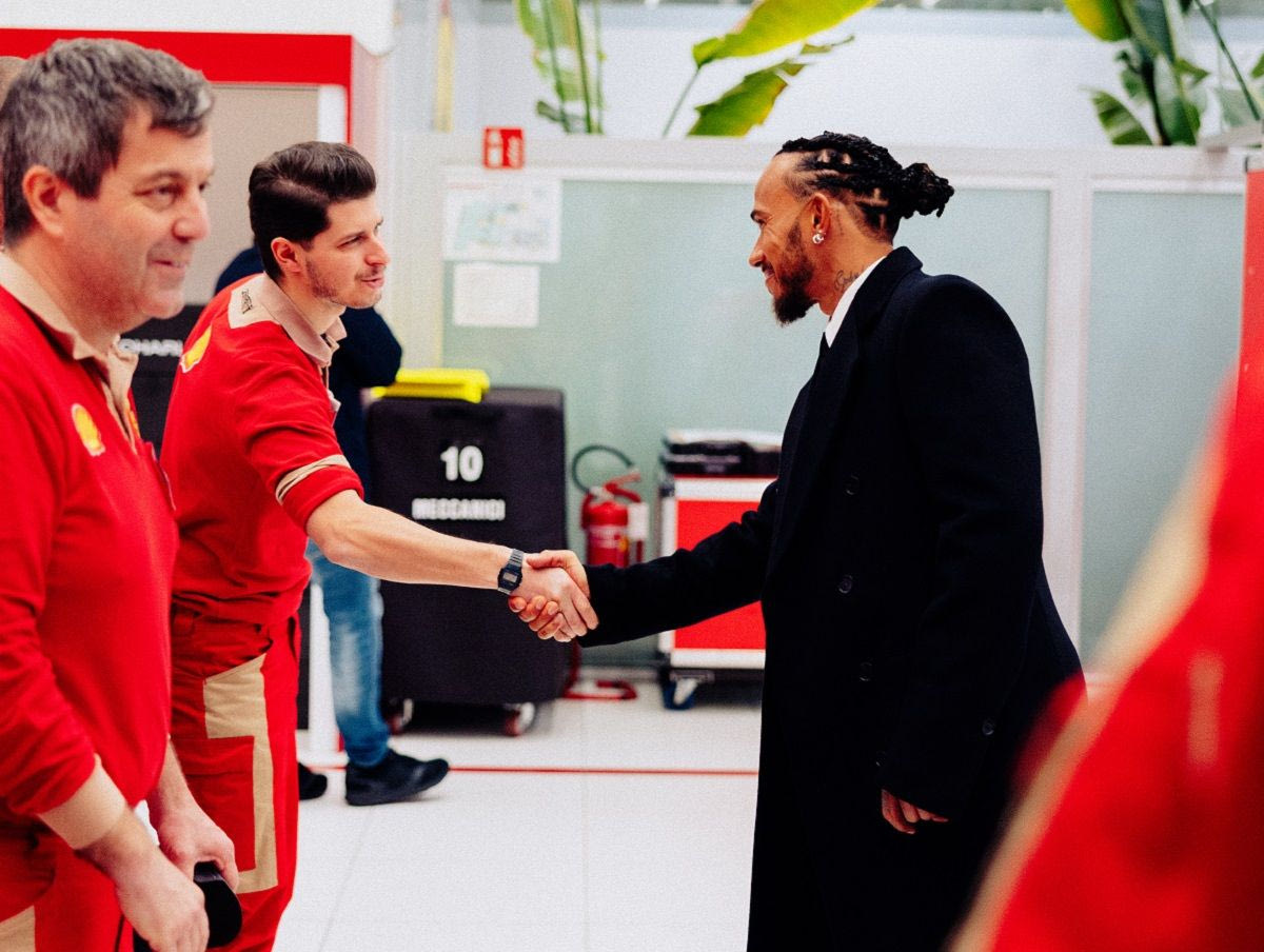 Στη συνέχεια, ο Λιούις μετέβη στην πίστα της Ferrari στο Φιοράνο, όπου τον υποδέχθηκαν οι Έλκαν, Βίνια και Βασέρ εμπρός από την διάσημη οικία του Έντσο Φεράρι. Μάλιστα, ο Βρετανός επτάκις πρωταθλητής επισκέφτηκε και το γραφείο του εμβληματικού “Κομεντατόρε”, που έχει διατηρηθεί απαράλλαχτο μετά το θάνατο του ιδρυτή της Ferrari, το 1988.
