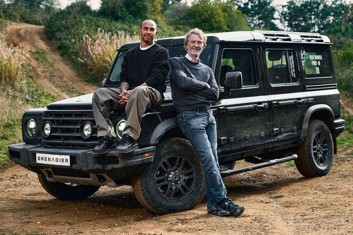 Ο Σερ Τζιμ Ράντκλιφ με τον Λιούις Χάμιλτον την ημέρα της βόλτας τους με το Ineos Grenadier Ineos Automotive