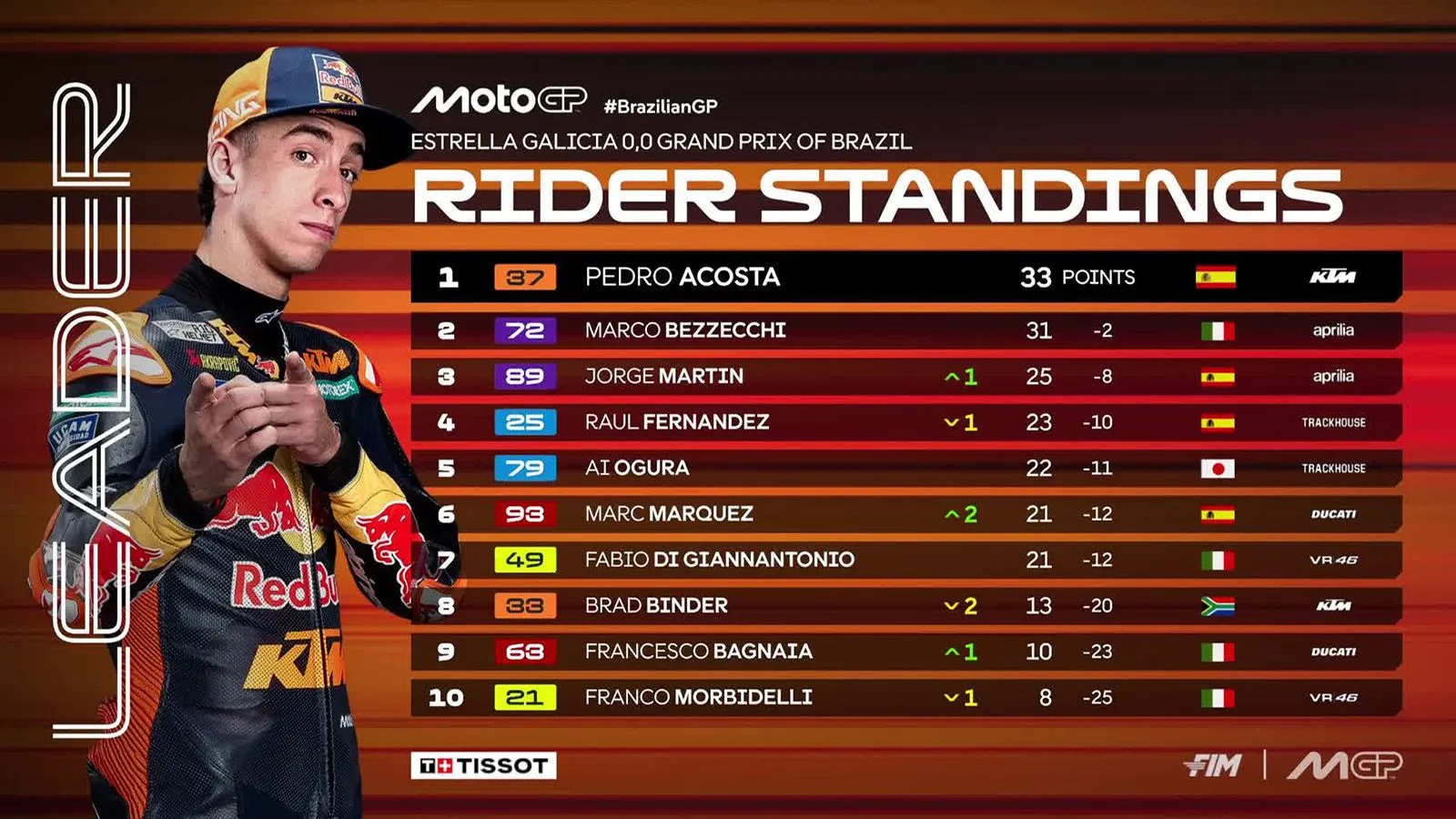 MotoGP 2026 – Η βαθμολογία μετά το Sprint της Βραζιλίας