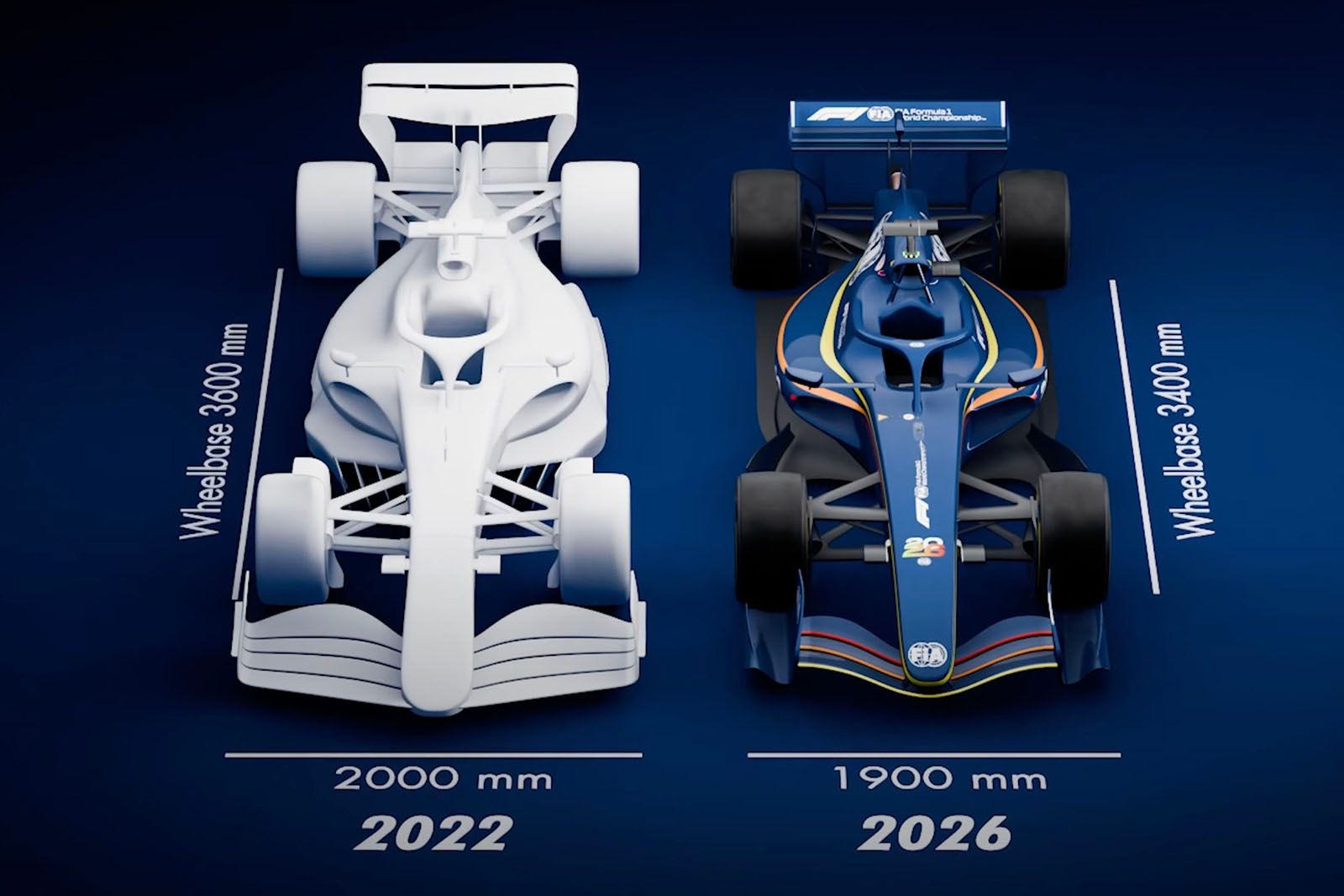 Εκτός από τις τροποποιήσεις στο δάπεδο, τα μονοθέσια του 2026 θα είναι επίσης αρκετά μικρότερα σε διαστάσεις: το μέγιστο μεταξόνιο μειώνεται κατά 200 χιλιοστά (στα 3,40μέτρα) και το πλάτος κατά 100 χιλιοστά (στα 1,900 μ.).