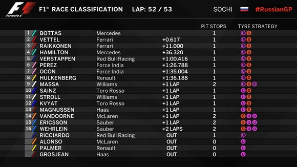 Τουλάχιστον έφυγε κερδισμένος από τη Ρωσία, καθώς ο μεγάλος του αντίπαλος στη βαθμολογία, ο Lewis Hamilton, έμεινε εκτός βάθρου, το οποίο συμπλήρωσε ο Kimi Raikkonen. Έτσι το προβάδισμα του Vettel αυξήθηκε, την ώρα που ο Hamilton διένυε το πιο δύσκολο φετινό του τριήμερο, αδυνατώντας να ακολουθήσει το ρυθμό των άμεσων αντιπάλων του.