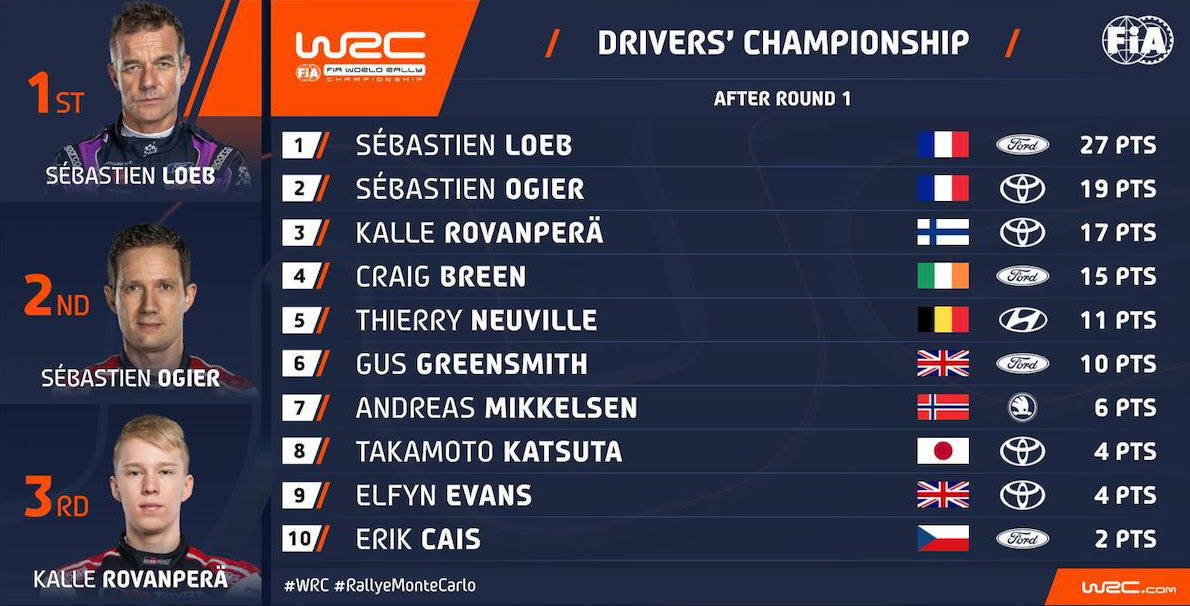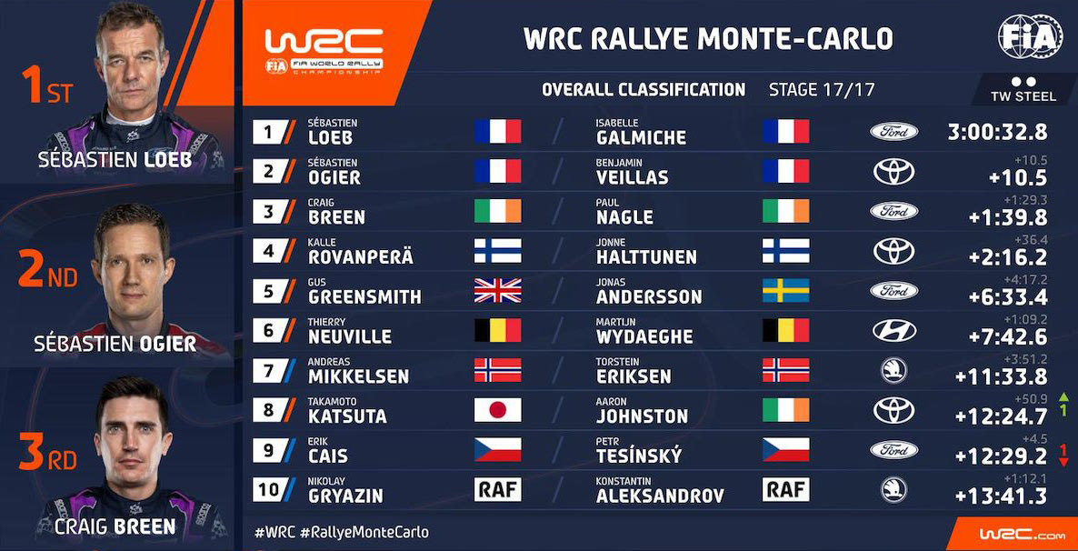 Στα 47 του χρόνια ο πιο επιτυχημένος οδηγός της ιστορίας των Ράλι, Σεμπάστιαν Λεμπ, επέστρεψε στην κορυφή του WRC κερδίζοντας το Ράλι Μόντε Κάρλο. Θρίαμβος και των Ford και M-Sport, που κέρδισαν με το Puma Rally1 τον παρθενικό αγώνα της υβριδικής εποχής του σπορ.
