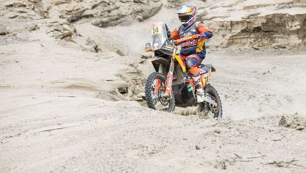 Στην πολυπρόσωπη, απρόβλεπτη και οριακή μονομαχία των μοτοσικλετών ο Ρίκι Μπράμπεκ της Honda διατήρησε μεν την πρωτοπορία, όμως τον πλησίασε στα 59 δευτερόλεπτα ο Σαμ Σάντερλαντ της ΚΤΜ, κερδίζοντας τη δεύτερη ημέρα του περίφημου «μαραθωνίου» -χωρίς Σέρβις στη διανυκτέρευση- από την Τάκνα στην Αρεκουίπα.