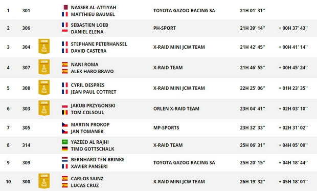 Ο Λεμπ, που πλέον έχει κερδίσει τις μισές Ειδικές φέτος, πληρώνει τον πολύ χαμένο χρόνο της δεύτερης και τέταρτης Ειδικής. Ο Γάλλος, με το ιδιωτικό προπέρσινο Peugeot 3008DKR της ομάδας PΗ Sport, ξεκίνησε τη δεύτερη εβδομάδα του αγώνα όπως είχε τελειώσει την πρώτη, πριν την ημέρα ξεκούρασης (Σάββατο 12/1) στην Αρεκουίπα, του Περού.