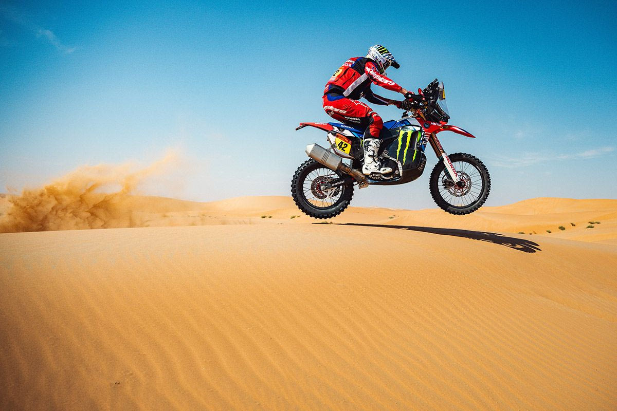 Πάντως ο Αμερικανός Μπράμπεκ, νικητής του αγώνα το 2021, κινήθηκε στο πρώτο σκέλος το Empty Quarter ταχύτερα από τον Μπραντς και μέχρι στιγμής έχει πάρει την πρωτοπορία της γενικής των δύο τροχών από τον αναβάτη από τη Μπουτσουάνα. Κοντά στους δύο είναι και ο Νάτσο Κορνέχο της Honda, που επίσης ήταν σήμερα στο ρυθμό του Βαν Μπεβερέν.