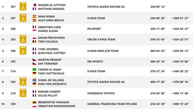 Έτσι, τη νίκη στην Ειδική πήρε ο Αλ Ατίγια -την 34η του στο Ντακάρ και 3η φετινή- που οδεύει προς την λιγότερο δύσκολη από τις τρεις νίκες του, για να γράψει ιστορία για την Toyota.