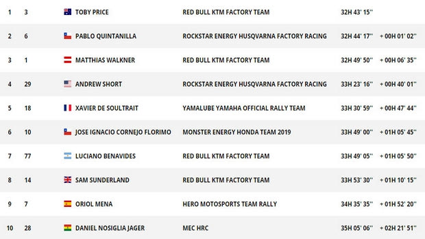 Με εξαίρεση τον Φαν Μπέβερεν, οι κορυφαίοι αναβάτες εκκίνησαν και τερμάτισαν μαζί – κι έτσι εξηγούνται οι ελάχιστες διαφορές τους σήμερα, που κράτησαν τη διαφορά του Τόμπι Πράις και του Πάμπλο Κιντανίγια στο μόλις ένα λεπτό, έπειτα από 5.182 αγωνιστικά χιλιόμετρα!