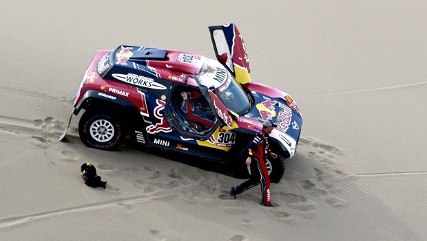 Ο Στεφάν Πετερανσέλ -μετά από έναν αγώνα γεμάτη με ασυνήθιστα γι’ αυτόν λάθη- εγκατέλειψε όταν κατέβηκε απότομα από έναν αμμόλοφο και προσέκρουσε στον επόμενο, με αποτέλεσμα να τραυματιστεί ο συνοδηγός του Νταβίντ Καστερά στη μέση. Ήταν η πρώτη εγκατάλειψη του Γάλλου εδώ και μια δεκαετία.