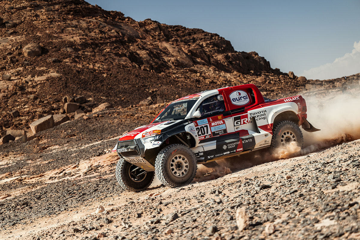 Καθώς τα τρία Toyota Hilux T1+ της εργοστασιακής Gazoo Racing κυριάρχησαν στα 287 χιλιόμετρα της ειδικής προς το Ουάντι αλ Νταουασίρ, ο Ζινιέλ ντε Βιγέρ ήταν μόλις 9 δευτερόλεπτα ταχύτερος του Χενκ Λάτεγκαν, ενώ ο Νάσερ Αλ Ατίγια ακολούθησε ένα λεπτό πιο πίσω.