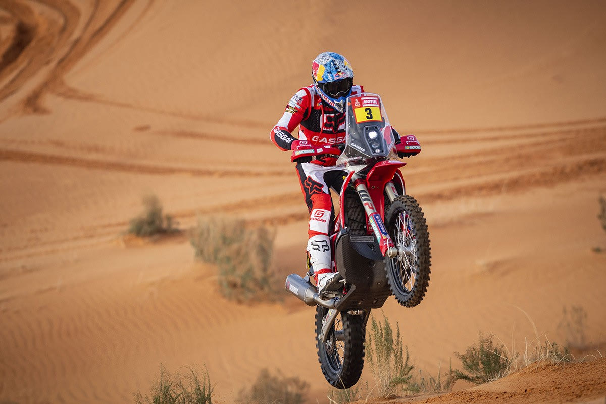Στις μοτοσικλέτες ο Ζουάν Μπαρέδα Μπορτ με τη Honda CRF 450 Rally ήταν εκείνος που πέτυχε σήμερα τον πρώτο χρόνο – όμως ήταν ο Σαμ Σάντερλαντ της GasGas, που τερμάτισε ακριβώς πίσω του, εκείνος που ανέβηκε στην κορυφή της γενικής κατάταξης. Ο χθεσινός πρωτοπόρος Ντάνιελ Σάντερς, επίσης της GasGas, έχασε πάρα πολύ χρόνο ανοίγοντας το δρόμο, και έπειτα με ένα λάθος πλοήγησης. Ήταν μόλις 28ος, 35 λεπτά μακριά.
