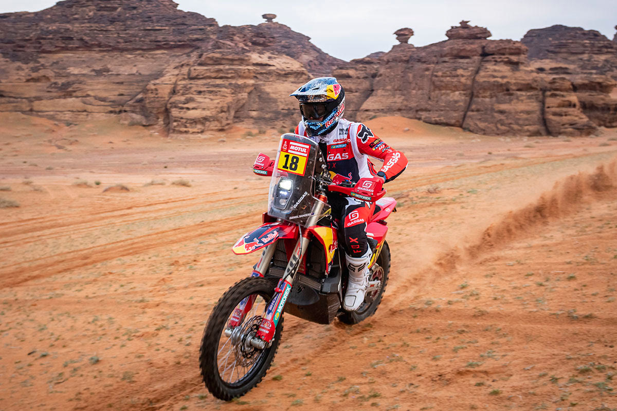 Στις μοτοσικλέτες, η μάχη είναι πιο οριακή, καθώς οι πρώτοι τέσσερις αναβάτες χωρίζονται από 4:30 λεπτά, και οι πρώτοι επτά από 11 λεπτά. Επικεφαλής παραμένει ο Ντάνιελ Σάντερς της εργοστασιακής GasGas, παρότι σήμερα έγραψε τον όγδοο χρόνο και δέχθηκε και ποινή 2 λεπτών ακόμη. Την Ειδική κέρδισε ο Ζοάν Μπαρέδα Μπορ της Monster Honda, με διαφορά μόλις 16 δευτερολέπτων από τον ομόλογό του Πάμπλο Κιντανίγια.